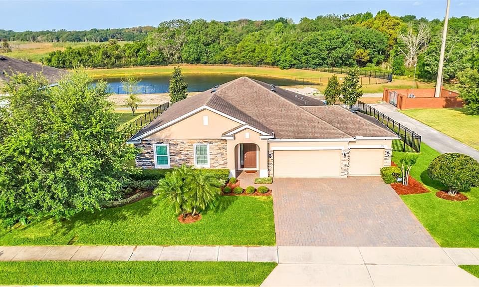 Looking for a well-maintained home with a 3-car garage, fenced in back yard, stunning sunset views, no rear neighbors, gated community, community pool & oversized lot? Then look no further! This 4-bedroom, 2-bathroom home sits on a .27 acre lot overlooking a conservation area within the city limits of Apopka. Breckenridge is a quaint & wonderful, gated community close to major highways which is convenient for getting to where you need to go quickly. When entering the home you’ll find a bedroom/office/den on your left hand side with glass French doors which is great for those of us that work from home. The guest bathroom offers dual sinks & the water closet & shower with tub. A door separates the main part of the bathroom from the shower. The open floor plan where the kitchen, dining room & family room are located make for the perfect entertaining space for you, your family & friends to gather & create memories. The kitchen offers granite counter tops, 42” cabinets, a closet pantry, stainless steel appliances & a large island where the sink is located & looks out into the family room. You certainly have the option of putting breakfast stools at the island & have plenty of room to spread out while cooking your favorite meals. You can relax in the screened in lanai while watching the sunsets & birds flying by the conservation area. The backyard has large brick pavers & a great firepit to enjoy during those cooler winter nights. The entire backyard is enclosed with a metal fence. The home offers a ring doorbell & security system that you can connect at your leisure & gutters which are needed during those rainy summer months. This home is truly a gem that you won't want to miss out on. It's perfect for anyone who desires a comfortable and functional living space. Come see it for yourself today and fall in love with all its exquisite features!