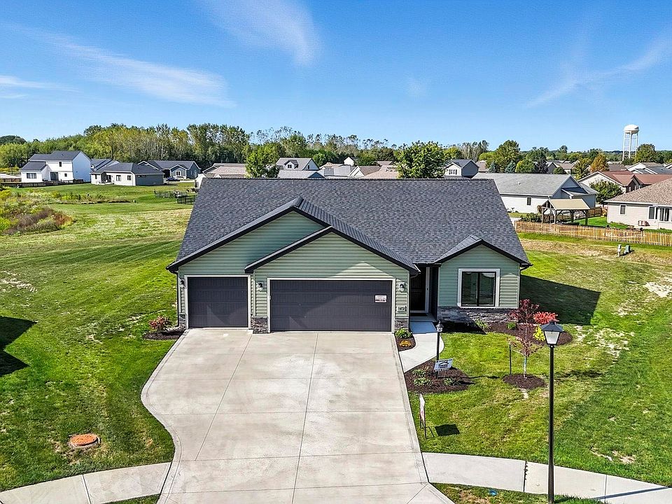 Brand new ranch home on a half acre lot by Granite Ridge Builders in Northwest Fort Wayne has all the best features in a new home. The spacious kitchen has custom cabinetry with an island, breakfast bar, and stainless steel gas range, dishwasher and microwave. A light filled sunroom is located off the nook and kitchen. The primary bedroom suite features a large walk-in closet, 5' vanity, linen closet and 5' fiberglass embossed shower. The three car garage is painted & trimmed plus it also has a hybrid polymer floor! Don't miss out on this great home in Hunter's Reserve!