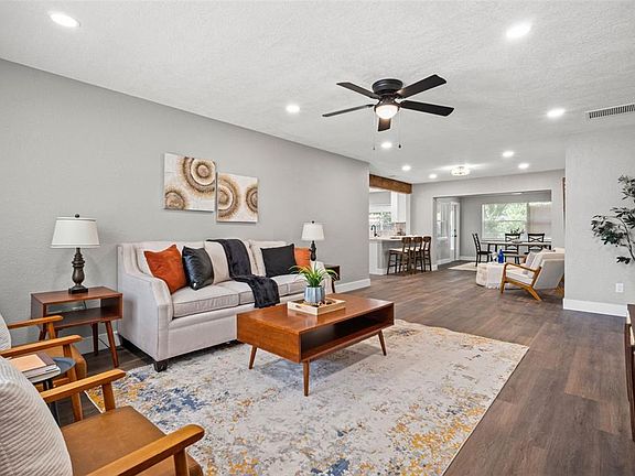 Stunningly renovated 3 bedroom + 2 bathroom + 2 garage home just minutes to Downtown Dunedin! BRAND NEW ROOF! This home sits high and dry in a NON flood zone with No HOA! You are welcomed inside to fresh paint and waterproof luxury vinyl plank flooring throughout. A super spacious living room cohesively connects into the kitchen featuring brand new cabinets, Quartz countertops, a separate coffee bar, and stainless steel appliances. This home features a formal dining space for family meals or having friends over, as well as a separate space for a reading area or breakfast nook. All 3 bedrooms in this home are generously sized! Both bathrooms have been completely remodeled with one having a beautifully tiled stand up shower and the other with a shower/tub combo. Enjoy the beautiful Florida weather on the screened in porch. The backyard is fully fenced and comes with a spacious storage shed. Golf cart to Main Street and enjoy everything Downtown Dunedin has to offer! Tons of restaurants, breweries, local shops, and festivals. Nearby is the Pinellas Bike Trail and the iconic Honeymoon Island. This is a gorgeous renovated home in an unbeatable location!