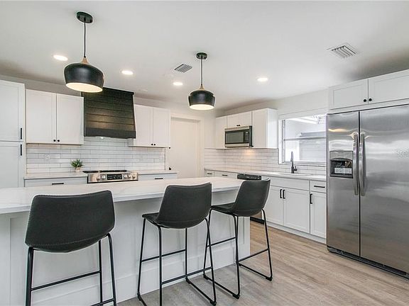 RARE opportunity to own your DREAM HOUSE in beautiful Clearwater, a property like this does not come around often! This stunning residence boasts 4 bedrooms, 2 bathrooms, and a 2 car garage on a gorgeous lot and finishes buyers dream of!. Upon entering, you will be captivated by the breathtaking finishes of this home. The kitchen is a chef's dream - with beautiful STAINLESS STEEL appliances, STONE countertops, STYLISH LIGHTING, and gorgeous CABINETRY. Lovely open floorplan perfect for entertaining! The master bedroom is filled with light and is a tranquil retreat. The master bathroom features beautiful vanity with stylish counters and a large spa-like shower. Enjoy relaxing in your family room and entertaining. Or enjoy the Florida lifestyle sitting out back on your screened lanai overlooking a SPARKLING POOL and great backyard! Enjoy living in this sought after location, close to amazing beaches, dining, and entertainment!