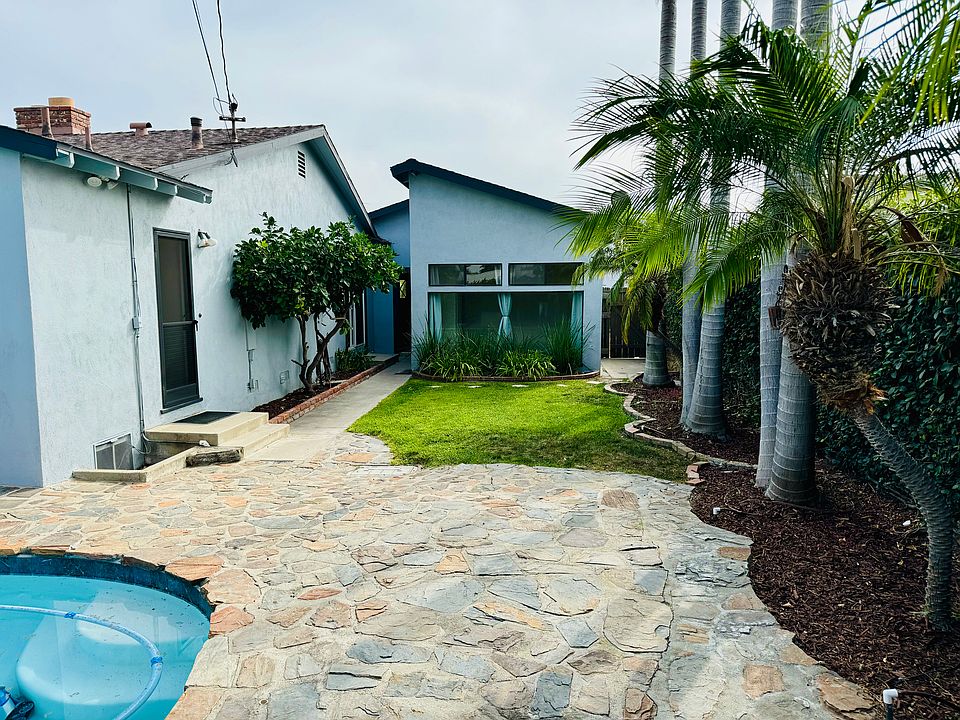 This gorgeous, remodeled, newly painted house with open floor plan is located in a quiet cul de sac in the heart of Tustin and has 3 bedrooms plus an extra, detached room behind the garage which makes a perfect office or guest bedroom. The beautiful, open kitchen comes with custom hardwood cabinets, brand new quartz counter tops, stainless steel appliances, and beautiful tile flooring. There is hardwood flooring throughout the rest of the house, crown moldings, baseboards, smoothed ceilings, brand new central AC and recessed lighting. The two bathrooms (1 full and one 1/2) have been remodeled as well.