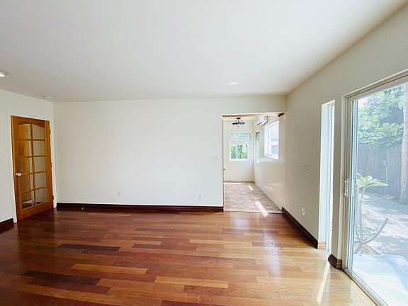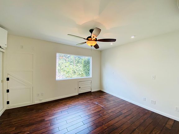 You'll fall in love with this uniquely designed lower level two bedroom. There are recessed lights wood floors throughout. The living room has a sliding door that leads out to a private yard. There is also a split A/C unit. The kitchen has an L-shape counter with custom glass cabinet doors. It includes a fridge, stovetop, oven, dishwasher and a stainless-steel hood. Both bedrooms have custom glass entry doors making the space warm and inviting. The master bedroom has a ceiling fan, custom mirrored closet doors and a fixed window. The other bedroom also has a ceiling fan split A/C unit and a sliding door that leads out to the private yard. The bathroom has a brand-new medicine cabinet, pedestal sink and a custom combination shower, spa tub and a fixed privacy window. Outside is a fenced in yard, great for entertaining and relaxing. There is one assigned parking spot. This complex is minutes to Ventura Blvd, Restaurants and has easy access to the 101 and 405 freeways. Terms: One year minimum lease term. Security deposit equal to one month's rent on approved credit. Pets allowed with breed restrictions and additional deposit. If you have a pet, please inquire with the office PRIOR to applying for more details.