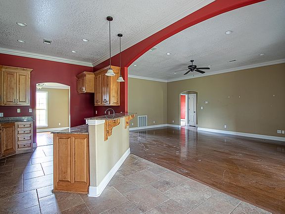 Priced WELL BELOW APPRAISAL!!! Here is your chance to own a rare property in the country! Home features an open concept with a split bedroom floor plan, bar seating, breakfast nook plus formal dining, granite counters, stainless appliances, custom cabinetry throughout, tile and hardwood in the main living areas, small office, 2 car garage plus utility garage, gutters, 2 AC units, HUGE Master suite with his and her walk in closets, front and rear porches to enjoy your afternoons over looking hundreds of acres of pasture land! House has the ultimate country setting on a hill with great views of the country side. Mature oak trees are scattered in the back along with views of a small pond. Easement access to this property so a gravel driveway is needed.