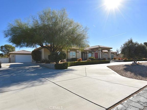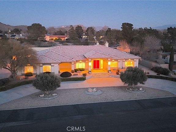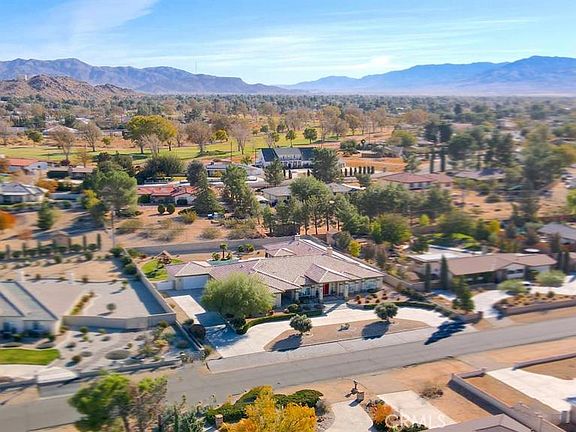 This unique and upgraded residence located in the City of Apple Valley offers luxury and comfort, making it a rare find in the area. Spanning a generous floor plan, this large custom-built home features 6 bedrooms and 5.5 bathrooms. Upon entering you are greeted with a grand entryway that leads into a living room bathed in natural light with a wall of picture windows. The living space flows into a large formal dining room, perfect for hosting dinner parties. The heart of this home is it's gourmet kitchen, which boast a granite island, custom cabinetry, ample storage, 2 dishwashers and double ovens. This space opens up to a cozy family room with a fireplace and views of the meticulously landscaped backyard. The Master suite is a retreat unto itself, featuring a remote-controlled gas fireplace/heater, a large Jacuzzi whirlpool soaking tub, and a shower with dual showerheads. Each bedroom comes with it's own en-suite bathroom, with one set up as a convenient Jack and Jill. Additionally, the home includes a mother-in-law/office/bonus room with a separate exterior entry, full bath and walk-in closet. Automobile enthusiasts will appreciate the 2 car garage with extra width and depth, as well as a separate 1-car, golf cart/workshop garage. The property's curb appeal is enhanced by a circular driveway and a fully xeriscape front yard. The backyard serves as a private oasis, ideal for entertaining with it's 1300 sq ft covered patio, including a raised patio cupola with a ceiling fan, and in-ground pool with a waterfall, a block wall for privacy, and a pet suite that opens to a dog run. This property is designed to accommodate multigenerational living and is within walking distance to the AV Golf Course. It also benefits from paid solar panels, adding to it's appeal for those seeking a well appointed lifestyle in the High Desert.