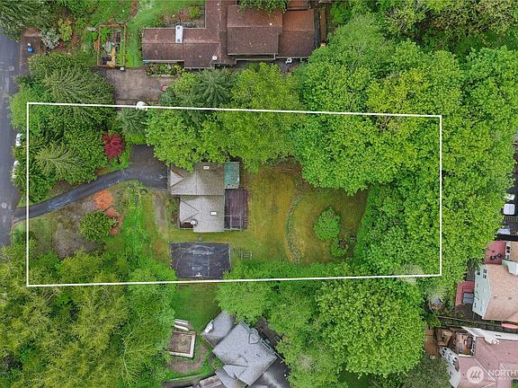 Investment opportunity! This sprawling 34,787 SF lot has numerous possibilities. This tri-level home on a quiet dead-end street features a great layout and is just waiting for your updates/repairs or redevelopment. The upper level includes 3 bedrooms & 2 full baths, while the main floor welcomes you with an inviting living room w/ fireplace, flowing into the dining area & kitchen with deck access. The lower level has a family room, half bath, laundry room & access to the attached garage. Updates include a new roof in 2021 & a water heater in 2023. The expansive lot, complete with a sport court, offers room for an ADU or DADU, or has the potential to be divided into 5-7 lots (buyer to verify w/ City of Kenmore). Helpful notes in supplements.