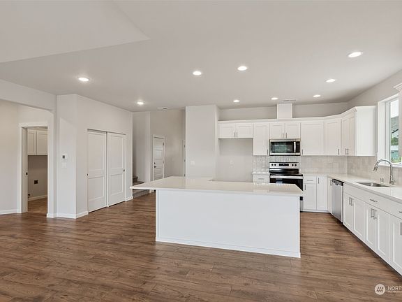 Up to 29K Seller Incentive Available! MOVE IN READY Main level living home by Soundbuilt Homes. Presenting The Camden floorplan in Yelm @ Mountain Meadows. New community of 21 spacious & private homesites. Thoughtful design w/open concept living from kitchen to great room. Primary suite w/generous bath including free standing soak tub & walk-in closet. Great room w/gas FP & floating mantel. Spacious kitchen with white shaker cabinets, quartz countertops, square tile backsplash, SS appliances & closet pantry. 2 additional bedrooms & full bath on main. Upper level includes bedroom, full bath & large bonus room. Enjoy landscaped front & back yard, covered front porch & covered outdoor patio w/gas fireplace. Heat pump for year-round comfort.