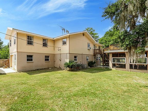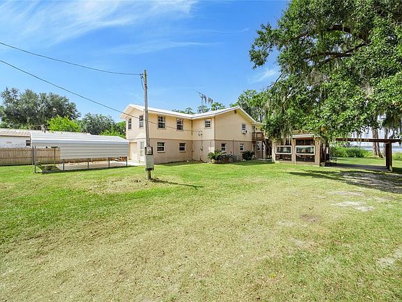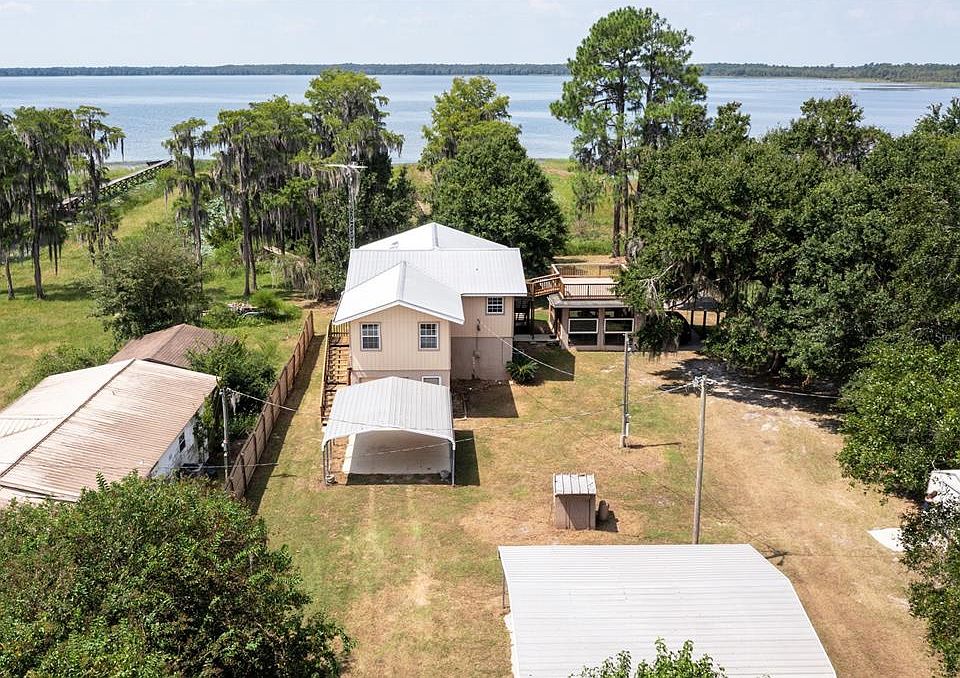 Stunning Lakefront Home on Lake Sampson – Multi-Functional Living with Scenic Views. Welcome to this exceptional lakefront property offering breathtaking views of beautiful Lake Sampson. This unique residence functions as two separate living spaces, making it ideal for multi-generational living, rental income, or a weekend retreat. The home features a NEW metal roof in 2019 and dual A/C systems (2016 & 2006). The upper level includes 3 bedrooms and 1 bathroom, along with a spacious living area. The lower level offers a generously sized 1 bedroom, 1 bath unit with a large kitchen featuring granite countertops, wood cabinetry, tile flooring, an oversized island, and an expansive walk-in pantry. Enjoy the peaceful surroundings from the large screened lanai with ceiling fans—perfect for sipping your morning coffee or unwinding in the evening while taking in the stunning sunrises and sunsets over the lake. Additional features include: Three large pole barns, oversized one-car garage, Dedicated laundry shed, Extra storage/tinker shed, Multiple water spigots throughout the property, ideal for gardening enthusiasts, A variety of mature fruit trees, including Meyer lemon, kumquat, and tangerine. The property is served by Clay Electric and offers endless possibilities—whether you're seeking a primary residence, an income-producing rental, or a tranquil weekend escape. This peaceful setting is perfect for fishing, boating, water skiing, or simply relaxing. Don’t miss this rare opportunity—call today for more information or to schedule your private tour.