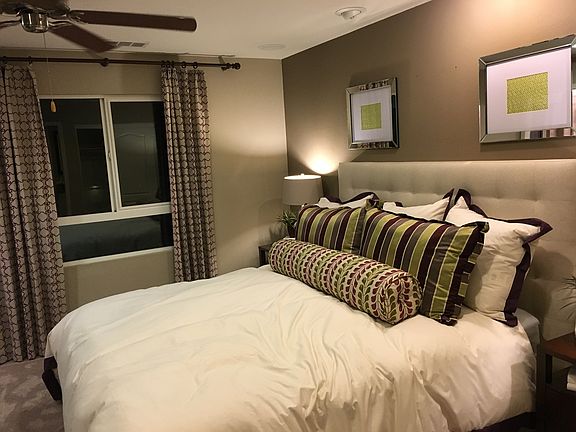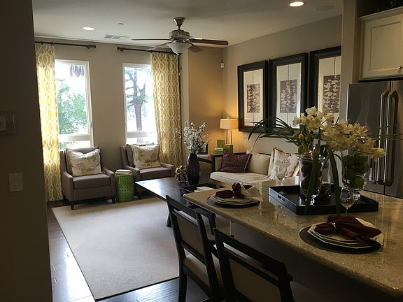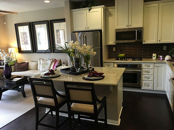 New construction model home built by Richmond American Homes in 2015. Gated community. Modern, tri-level, urban living design. GE appliances, in-home washer-dryer, solar energy, gourmet kitchen with granite counter tops and island, walnut engineered hardwood flooring, resort-style bathrooms, and modern window treatments. Two full master bedroom suites with walk-in closets. Third bedroom with full bath can be used as an office.
