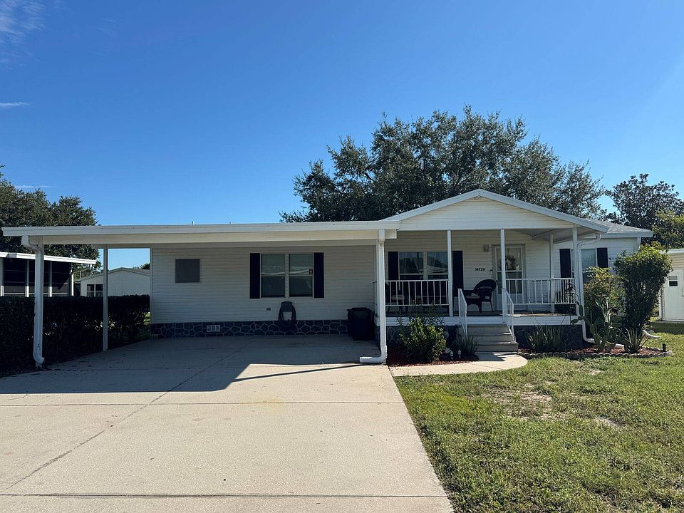 Charming 3-Bedroom, 2-Bathroom Home with Spacious Carport and Split Floor Plan Welcome to this beautifully maintained 3-bedroom, 2-bathroom home featuring a thoughtfully designed split floor plan that offers both privacy and functionality. The interior boasts stylish laminate wood flooring and ceramic tile, creating a warm and inviting atmosphere. Enjoy cooking and entertaining in the eat-in kitchen, complemented by a separate dining area perfect for family gatherings or formal meals. The spacious living areas flow seamlessly, making this home ideal for both relaxing and hosting. Step outside to a cozy front porch and a serene lanai off the back-perfect for morning coffee or evening unwinding. The large carport with side-by-side parking, provides ample space for guests or multi-car households. Both rood and A/C were replaced in 2023 This home combines comfort, convenience, and charm in one perfect package. Don't miss the opportunity to make it yours!