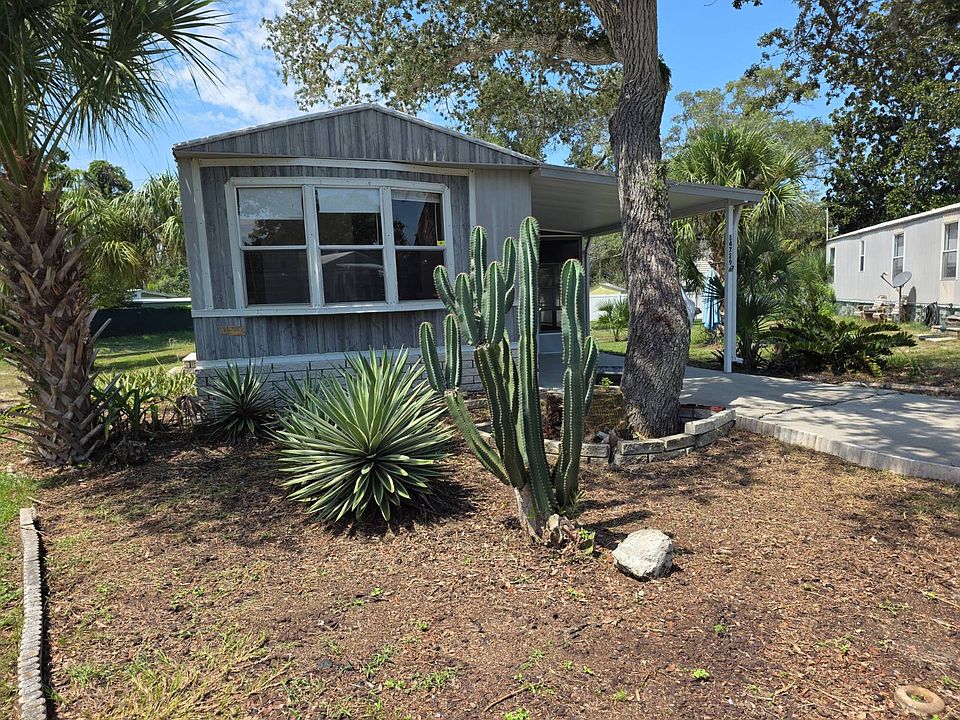 Welcome to Oak Bend Park and active 55 plus Gated Community in sunny Hudson, FL. This lovely 2-bedroom, 2-bathroom home has been partially renovated. July 2025 A/C was completely overhauled to like new condition. The entire house was repainted inside. Enjoy cooking in your kitchen complete with new cabinets, countertops, sink, faucet and flooring. Both bathrooms have new full-size showers, vanities, and flooring. Some electrical upgrades such as lighting and receptacles. New skirting on outside of house. Plenty of storage in the outside attached shed which also hosts the laundry room. Enjoy sitting in the screened lanai talking with the friendly neighbors. Enjoy the amenities of the fabulous park including gated community, clubhouse, shuffleboard, pool, monthly gatherings. Monthly lot rent is $644.00 which includes trash and basic grass cutting. Upon purchase of this home, you will need to have a background check to ensure the safety of all residents and a valid driver's license and/or ID card. Pets allowed via approval of the park.
