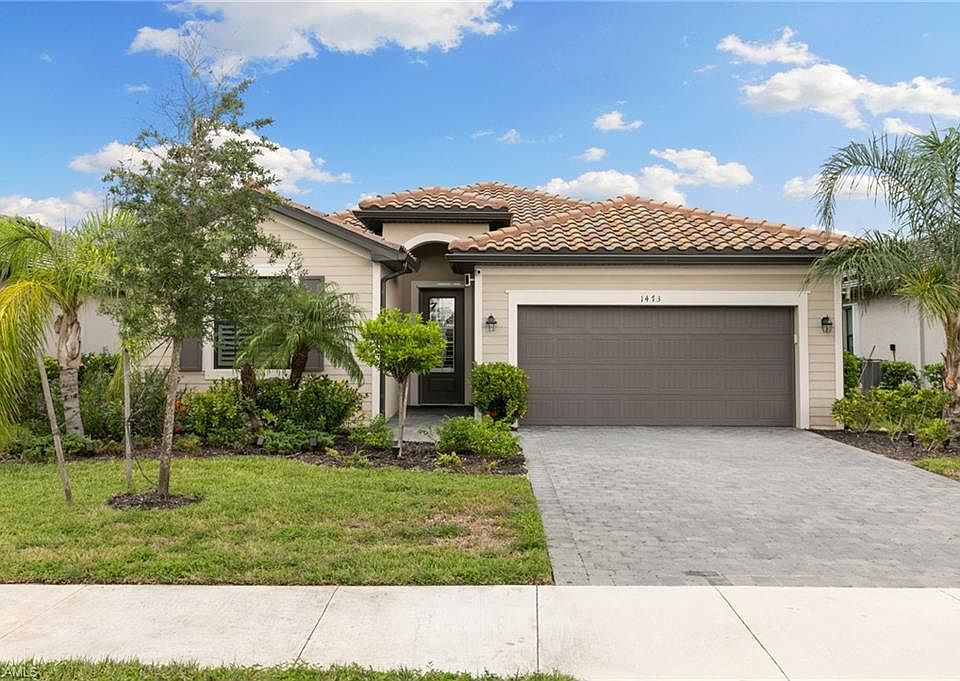 Welcome to your piece of paradise in sunny Naples! This stunning single-family home features the popular one-story Trevi floor plan, offering a spacious 4-bedroom, 3-bathroom layout with a desirable Split Bedrooms design for maximum privacy. The true highlight of this home is the private, screened lanai and beautiful below-ground pool, which provide spectacular, direct waterfront views of the lake. With its ideal western exposure, the property is perfectly positioned for you to witness breathtaking sunsets over the water every evening, creating a serene and unforgettable backdrop for both relaxation and entertaining. Beyond the stunning views, you'll also have access to a resort-style Clubhouse, pool, exercise room, library, tennis courts, and a public golf course, all conveniently located just moments from a local shopping center. This home truly offers the best of Florida living with an incredible view.