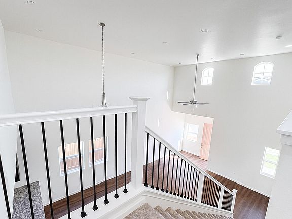Upstairs, you'll find two more bedrooms and a third full bathroom, along with a flexible loft or office space ideal for remote work, a media area, or a playroom. The open staircase and dramatic ceilings create a bright, airy feel, complemented by large windows that fill the space with natural light.