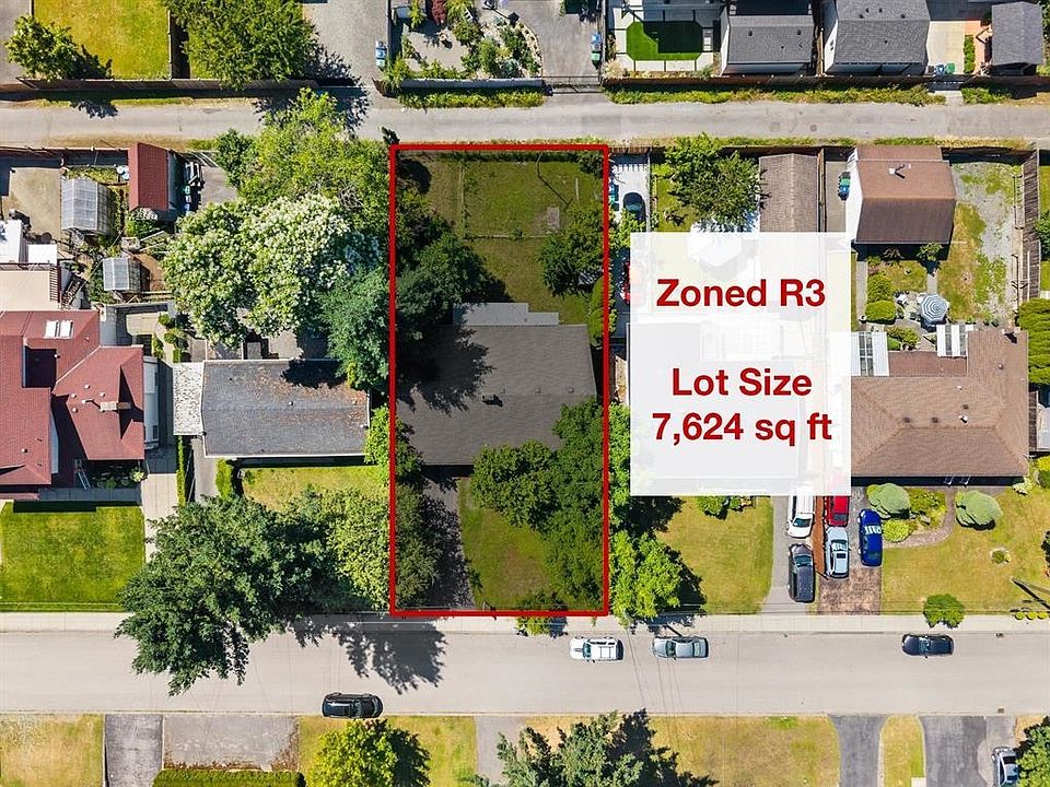 Opportunity to Build or Invest in a Prime Location. This spacious lot with a sunny south-facing backyard and convenient lane access offers endless potential. Whether you're looking to build your dream home, a duplex, or a houseplex (zoned R3, allowing up to 4 dwellings), this property checks all the boxes.The existing home offers 3 bedrooms and 2 bathrooms, an open main floor layout, some updated flooring and paint, and an extra-large recreation room below with a separate entry, ideal for suite or rental potential. Sliders off the living room lead to a covered deck, and there's a large garden in the rear. Home "As is". The exterior siding has also been updated. Located in a family-friendly neighborhood, it's a short walk to École Gabrielle-Roy, Mary Jane Shannon Elementary, and Guildford