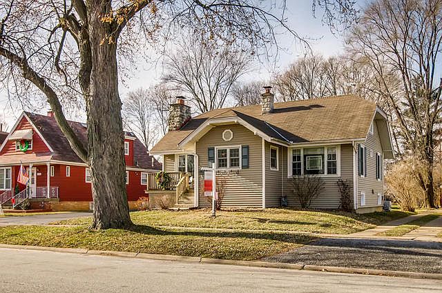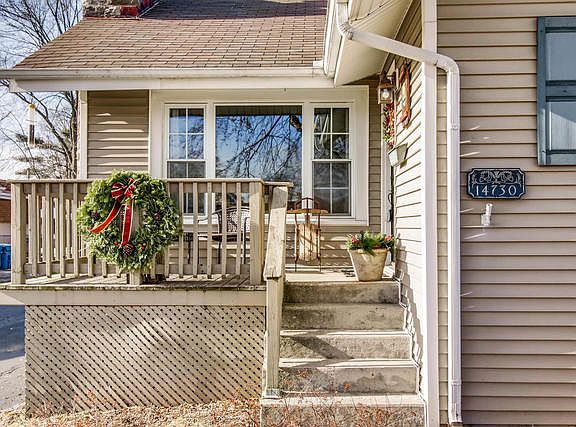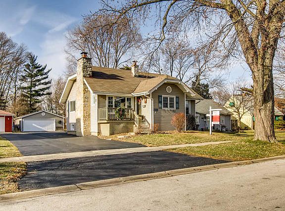 Super Cute 4 Bedroom/2 Bath home. Neighbor friendly front porch. Large, natural stone, cozy stone fireplace and wood floor in living room. Dining room off the kitchen. Full-size, unfinished basement, perfect for hobbies or kids' hang out! Nice size deck off kitchen (great for barbecuing) overlooking large deep back yard (lot is 0.35 acres/50' x 300' deep). 2.5 car detached garage. Mature trees. Walking distance to restaurants, bank, shopping and schools.