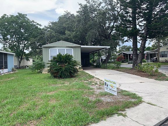 This Updated 2 Bedroom, 1 Bath Corner Lot Home is located in Oak Bend, a 55-Plus Gated Community in Hudson, FL with LOW LOT Rent of $519 a month. This Home has Recently been Updated. HIGHLIGHTS Include: Roof is Rubber-Membrane and recently Sealed, NEW Wood Flooring throughout, Vaulted Ceilings, NEW Washer & Dryer Hook-ups inside the home, NEW Ceiling Fans, NEW Electrical Outlets, NEWER Oven, NEWER Refrigerator, Double Stainless-Steel Sink and Faucet, NEW Front and Florida Room Doors, NEW Hardware on Kitchen Cabinets, Entire Interior and Exterior Freshly Painted and NEW Blinds! The Lovely Home has a 2 Car Carport, Florida Room with a Shed for storage on a SPACIOUS lot! The Washer & Dyer Hook-ups are in the home. The Bathroom is Extra Large with a NEWER Toilet, Long 1-sink Vanity with a NEW Fountain Faucet. The Dining Area has a Built-in Wall Cabinet and an Open Design to the Living Area. THIS HOME IS A STEAL OF A DEAL! Oak Bend MHP is a 55-Plus Gated Community. The Park has a Heated Swimming Pool, Shuffleboard Court, Clubhouse with library, pool tables and many fun activities. LOW LOT RENT of $519 a month includes trash, lawn and all the Park Amenities. Pet Friendly - 2 Pets any size, no aggressive breeds. This friendly park is tucked away in Hudson, Florida minutes away from Hudson and SunWest Beaches, Bayonet Point Hospital, restaurants, shops and much more. ------- CASH ONLY -------