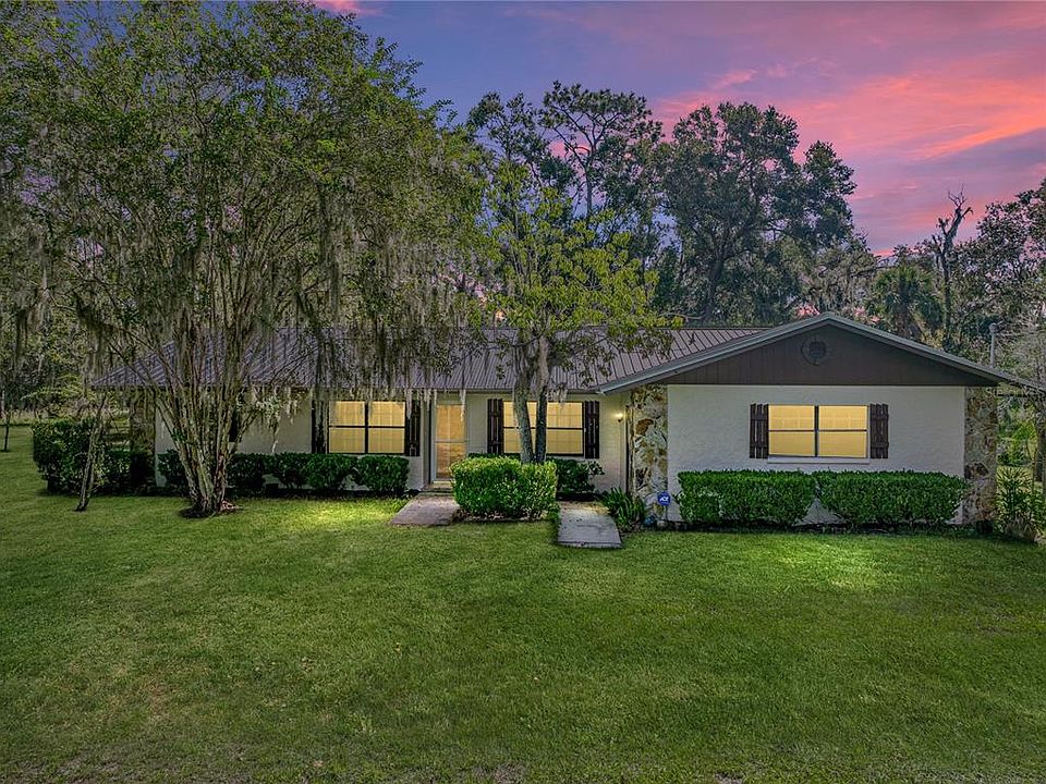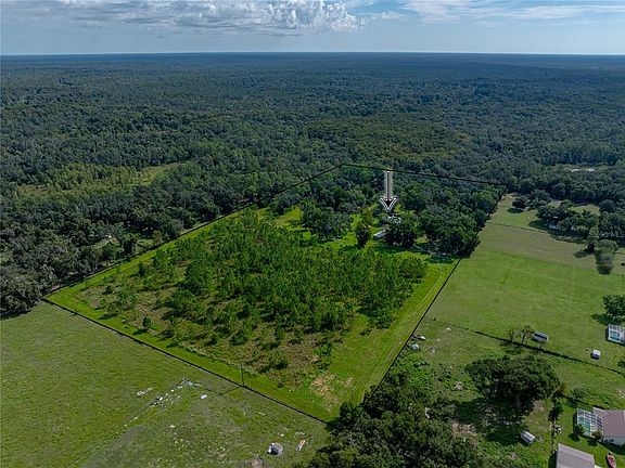Priced Below Appraised Value! Endless nature is at your doorstep with this 20-acre property that borders over 100,000 acres of SWFWMD trails for walking, horseback riding, and exploring. With no rear neighbors and wide-open natural surroundings, this truly is a tranquil retreat. The peaceful drive in is bordered by rows of pine trees that not only add to the setting but also provide greenbelt tax savings. A canopy of trees opens to reveal a welcoming 2000+ sq ft home with a 2022 metal roof, 3 bedrooms + office, 2 baths, and a thoughtfully designed floor plan. Inside, the light-filled formal living room flows easily into the open family room and kitchen. A gas fireplace with a stone surround, French doors to the screened porch, and easy access to the chef’s domain create a warm and functional layout. The kitchen is well-equipped with ample wood cabinetry for storage, some stainless steel appliances and generous prep space. There are multiple dining options including a breakfast bar, eat-in dinette, and a charming formal dining room nearby. A private office and convenient laundry closet sit just off the kitchen. The split bedroom layout offers a secluded primary suite with private porch and Jacuzzi access, and an ensuite bath featuring an accessible walk-in tub. On the opposite side of the home, two secondary bedrooms share a beautifully updated 2025 guest bathroom with a new vanity, fixtures, paint, and toilet. Throughout the home, easy-care flooring means no carpet to worry about! Step outside to enjoy a screened back porch overlooking your own wooded sanctuary. There are three outbuildings for storage or projects, a second well for the pine trees and plenty of space for animals. With endless opportunities to create a farm lover’s dream, this property truly delivers. All while bordering thousands of acres of protected land where nature is your closest neighbor. If you’ve been searching for a spacious home surrounded by tranquility and trails, this is the one. Call today for your private showing.