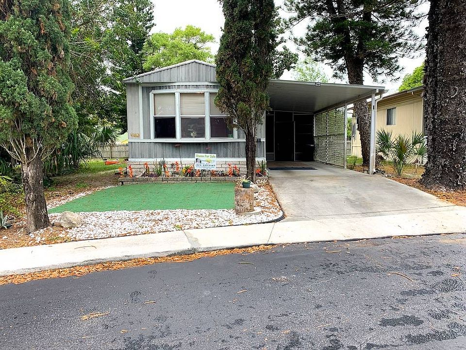 This is a 2 Bedroom, 1 Bathroom PARTIALLY FURNISHED Home, which is approximately 620+ sq ft. excluding the approximate 150 sq. ft. Florida Room. The AC unitisBRAND NEW with a Transferrable Warranty, Roof is a metal Roof-Over, Floors haveNEW 3/4 inch sub-flooring4 years ago,Flooring NEW intheKitchenand theBathroom,NEW high-rise toilet, 3NEW ceiling fans, 2 have night-lightsand NO BACK NEIGHBORS! There is a lovely yard that is fenced in the back. The Living Roomis spacious and an "open" design to the Kitchen. The Kitchen has a Breakfast bar/Countertop, double stainless-steel sink, Refrigerator, Oven, Microwave, Built-in Server, plenty of Cabinets and a Dining Area. The Bathroom is LARGE with a Vanity, New high-rise toilet, Bathtub/Shower, cabinets for bathroom accessories and a shelving unit. There is a long hallway with a closet, cabinet and space for a Laundry Area where the Washer & Dryer are located with more cabinets for laundry accessories. The Guest Bedroomis large enough for a full to queen-size bed, a closet and a dresser. The Master Bedroom is large enough to a king-size bed, it has 2 big bedside tables and room for more bedroom furniture. The Home has a Florida Room off of the 2-car Carport. It has a Table & Chairs and is a great place to sit, relax and enjoy the Gulf Breeze. There is a large Shed perfect for extra storage. If you are looking for a "Steal of a Deal" look no further, Lot Rent of $504, which includes Lawn Service and a place to take your trash. This is a quiet park, hidden gem in a gated community. Oak Bend is a 55-Plus Gated Community in Hudson, FL. The park has a Heated Swimming Pool, Shuffleboard Court, Clubhouse and many fun activities. LOW LOT RENT of $504 a month includes trash, lawn and all the Park Amenities. Pet Friendly - 2 Pets any size. This friendly park is tucked away in Hudson, Florida minutes away from Hudson and SunWest Beaches, Bayonet Point Hospital, restaurants, shops and much more! ------------ CASH ONLY ----------