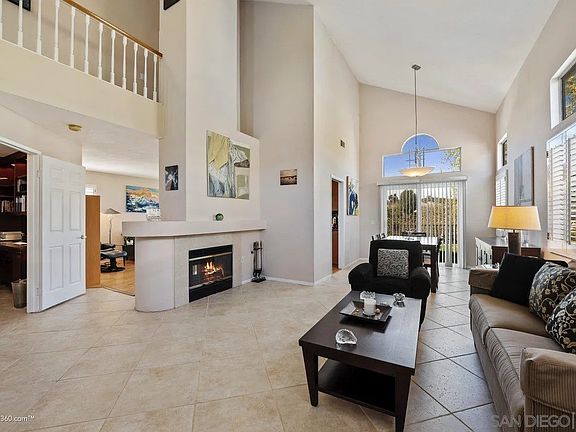 Enjoy the San Diego lifestyle in this spacious 4 bedroom, 3 bath home. This well maintained property is move-in ready! Sweeping ceilings and generous windows showcase abundant natural light. Plantation shutters and George Kovacs lighting enhance the open and bright interior. Double-sided fireplace provides comfort and ambiance to both living and family rooms. Versatile downstairs guest bedroom offers built-in furniture and an ensuite bathroom. Spacious kitchen has been updated with granite counters and stainless steel appliances. Primary suite features walk-in closet, and large windows with picturesque views. Upstairs baths have been fully remodeled with new cabinets, Caesarstone counters, and custom tile showers. Enjoy gentle breezes and sweeping vistas from the private backyard. Scenic area behind the property is designated as open space in the planned new development in Carmel Mountain Ranch. Nothing will be built behind! Newer HVAC, water heater, windows, and sliding doors. Whole house repipe was completed in 2021. Carmel Mountain Ranch community is well known for its abundant shopping and dining. Located in top-rated Poway Unified School District, this home is walking distance to Highland Ranch Elementary, Highland Ranch Park, CMR Library, Trader Joe's, Champagne French Bakery, and much more!