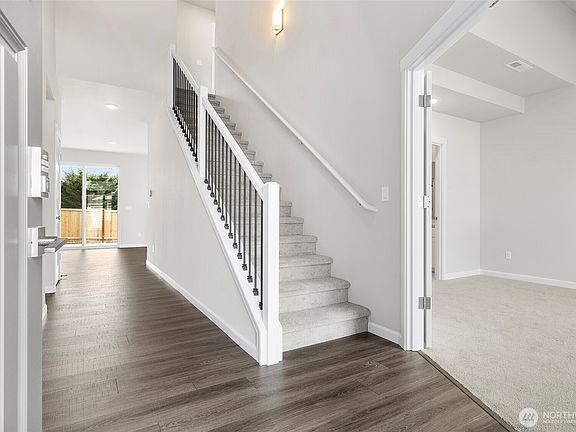 BUILDER INCENTIVE – Rates as low as 4.99% with Trusted Lender! Move-in ready Sterling plan by Soundbuilt Homes at Mountain Meadows. Main floor features an open great room with gas fireplace, designer kitchen with white shaker cabinets, quartz counters, subway tile backsplash, stainless steel appliances & walk-in pantry. Flexible main level guest suite/office with attached 3/4 bath & walk-in closet. Additional 1/2 bath on the main level. Upstairs, relax in the spacious primary suite with walk-in closet & spa-style bath. Two additional bedrooms plus bonus(5th bedroom). Outdoor living is a dream with a covered patio, professionally landscaped & fully fenced. Heat pump for year-round comfort.