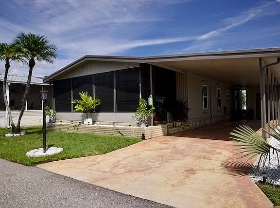 Priced to sell quickly at $118,000. Monthly land lease rent is a real time low at $691. This lovely, manufactured home is on leased land. This community requires at least one owner be age 55+ community. In a great location with your own boating marina with entrance to the Caloosahatchee River. 2 bedrooms /2 updated bathrooms, 2019 roof, updated kitchen, freshly painted, new sub-floors, vinyl plank floors thru-out, stainless appliances, indoor laundry, shed, washer/ dryer, very nice landscaping and a rear patio, new windows, 2025 hot water tank, updated plumbing (no gray pipe), enclosed lanai and wired for an outside generator outlet installed. A great amenities such as a beautiful clubhouse, heated pool, hot tub, tennis, shuffleboard and much more.