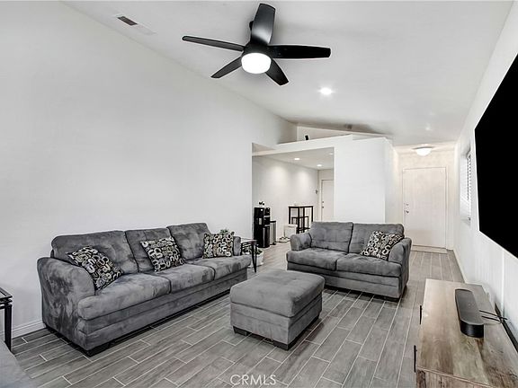 Welcome to this beautifully updated single-story home featuring 3 bedrooms, 2 bathrooms, and over 1,000 sq ft of living space. Perfectly located in a quiet Perris neighborhood, this home combines charm, comfort, and modern upgrades. Step inside to discover a bright and open floor plan with fresh interior paint, low-maintenance tile and laminate flooring, and a cozy living room fireplace. The remodeled kitchen offers brand-new cabinets, sleek countertops, stainless steel appliances, and a stylish pantry with a glass door. The backyard is ready for your personal touch, while the attached 2-car garage adds convenience and storage. With central heating and A/C, indoor laundry, and easy freeway access, this home checks all the boxes!