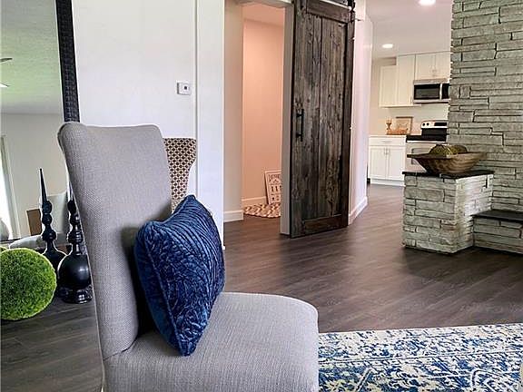 Exceptional "Like New" home, in absolute "Move-in" Condition. The last six months have brought extensive updates: Roof shingles, gutters, Windows, Furnace, Central-Air, Kitchen, baths, plumbing, electrical panel, garage doors, flooring & paint. Beautifully designed kitchen with faux marble counter tops - coffee bar & a peninsula with a restaurant style sink & faucet. Two stone fireplaces, one in the large living room & the other is in the kitchen/Hearth/Dining room - you'll love it! Wonderful oversized garage with a front and back garage doors - great for car & hobby enthusiasts. The patio is being replaced.