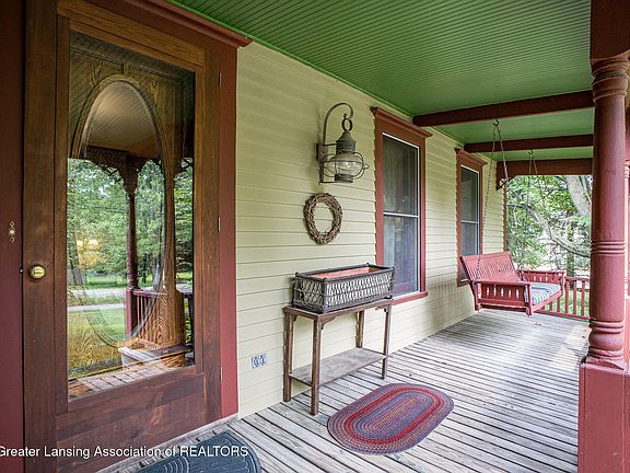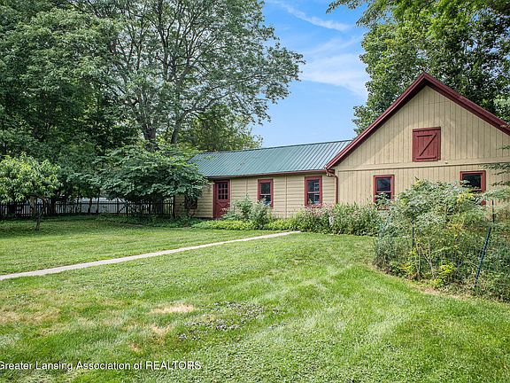 Welcome to 1474 Hatch Rd! Nestled in an area that boasts the best of both worlds - a private nature setting while being closely located to all that the heart of Okemos has to offer, this two story home is full of charm! This historic farmhouse was in fact built in 1882 for the Dillinger Family by Gottfried Herre! It has since been meticulously preserved and thoughtfully updated throughout the years. The foyer provides a stately entrance at the center of the home, it leads to the formal living room that has proved itself to be multi-purposeful. The den located at the back was a later addition and suits the home so well. The brick fireplace, wood mantle and beams, and windows overlooking the landscaped backyard create a cozy and welcoming environment. The spacious kitchen features wood cabinetry, quartz countertops, updated stainless steel appliances, and stunning reclaimed wood floors from the Sears Tower (aka Willis Tower) that flow throughout! Moving into the dining room, many design characteristics including the wood stove, bay window, wainscoting, and other original trim work add to the overall historic charm! The mudroom has a built in bench and coat hooks, built in storage, hidden pantry, and beautiful brick flooring that leads to the kitchen, basement, or outdoors. A large main floor primary bedroom and full bathroom - including an extended double vanity, a unique high tank pull chain toilet, washer and dryer - and a quaint half bath complete the main level. The second level has four generous sized bedrooms and a large full bathroom. Yes, this home has 5 Bedrooms and 2.5 Bathrooms! Outside you're greeted by a front porch, large back deck, fully fenced yard, many blooming gardens, and an ample amount of storage space in the expanded garage/workshop, lean-to, and other sheds/structures. Pride of homeownership, attention to detail, and craftsmanship to last not only decades, but centuries can be seen throughout! Come see all that this home and property have to offer!