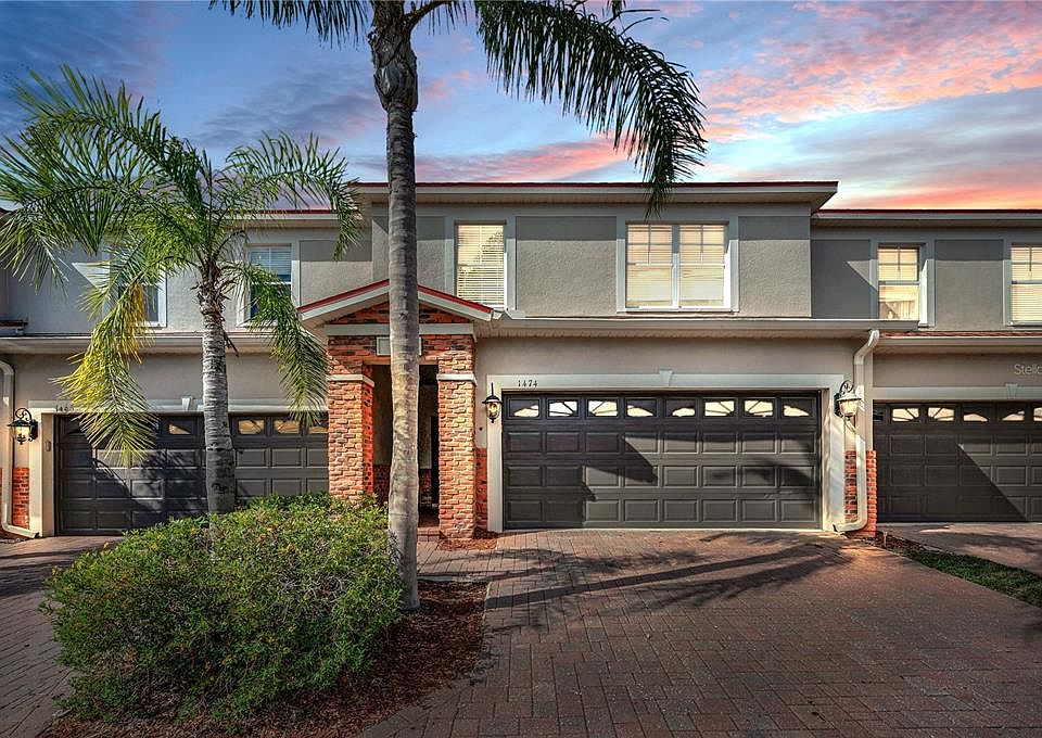 Welcome to 1474 Hillview Lane, a beautifully maintained townhouse located in the desirable gated community of Beckett Way in Tarpon Springs. Built in 2007, this spacious 3-bedroom, 2.5-bath home offers over 2,200 square feet of comfortable living space with a thoughtful layout and quality finishes throughout. The main level features an open-concept design that seamlessly blends the kitchen, dining, and living areas—perfect for both everyday living and entertaining. The kitchen is equipped with stainless steel appliances, granite countertops, rich wood cabinetry, and a large center island with bar seating. Just off the living area, sliding glass doors open to a screened lanai ideal for relaxing or enjoying outdoor meals. A convenient half bath is located downstairs for guests. Upstairs, the large primary suite offers a peaceful retreat with a walk-in closet and an en-suite bath featuring dual vanities, a soaking tub, and a separate walk-in shower. Two additional bedrooms and a versatile loft space provide plenty of room for family, guests, or a home office. The laundry room is conveniently located upstairs for added ease. Other highlights include a two-car garage, freshly painted interior, and ample storage throughout. Beckett Way is a gated, maintenance-free community that covers exterior and lawn care, water, sewer, and access to a sparkling community pool. Ideally located just minutes from historic downtown Tarpon Springs, the Sponge Docks, the Pinellas Trail, local shops, dining, and some of the area’s most beautiful beaches, this home offers the perfect combination of comfort, convenience, and coastal living.