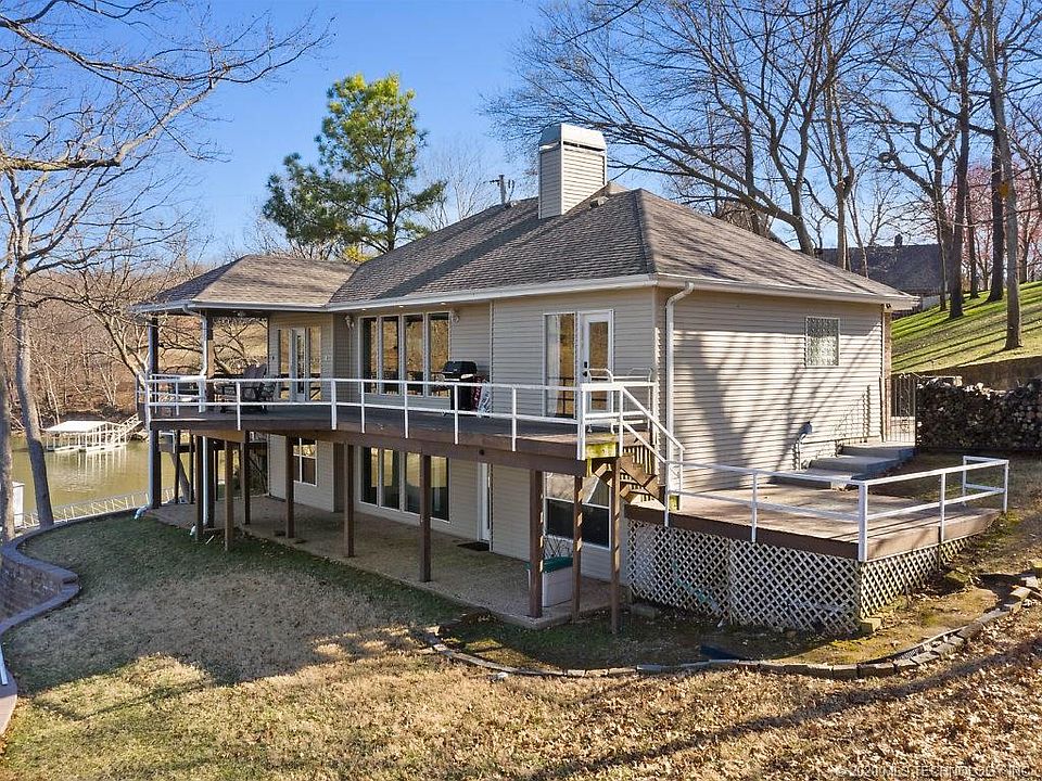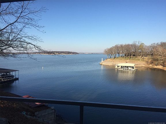 Ideal Lakefront Home. Breathtaking view as you walk through the entry and from nearly every room. Property has gentle slope and cove protection for boat dock. Master BR with fireplace and deck access on walk-in level. Also on walk-in level is living, dining, kitchen and laundry along with a wine closet, wet bar and wall of glass bringing in lots of sunshine. Take in the beautiful sunrises from the full length deck along lakeside. 3 BRs and a living down, 2 car gar and lots of parking. Easy to Show.
