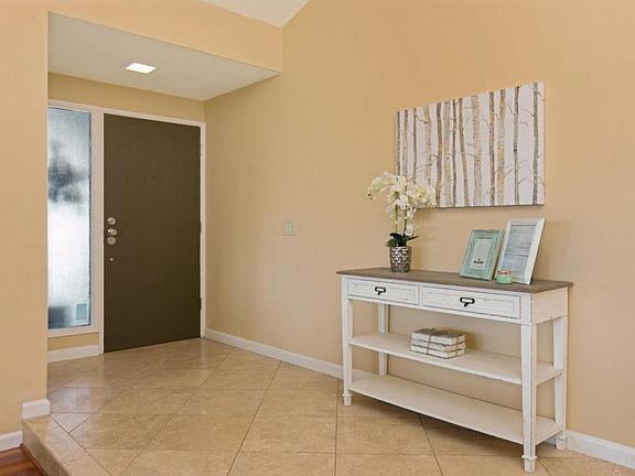 Beautiful Single Story Home in the very desirable neighborhood of Via Ondulando. Walking inside beyond the spacious 3-car garage with built-in ceiling storage, one will enjoy the high-end tiled entry juxtaposing the engineered, hardwood flooring. With all new dual-paned windows illuminating the home, the opportunities are endless: Head to the green, grassy yard, the elevated entertaining porch on the right, or the comfortable family, dining, and kitchen trifecta with custom, acid-washed & marble fireplace, high-end stainless appliance, custom granite, and the most ideal organizing cabinetry. This is a fantastic Ondulando, single-story 4-bedroom, 2-bath home. Think of the possibilities: Room for a pool, spa, BBQ area with gazebo -- you name it. French doors lead from the master straight into your personal oasis as well. Additionally, enjoy approximately 10 fruit trees from orange, to avocado, grapefruit, tangerine, key lime, lemon, apple, lime and peach along side the native, drought-tolerant planting.