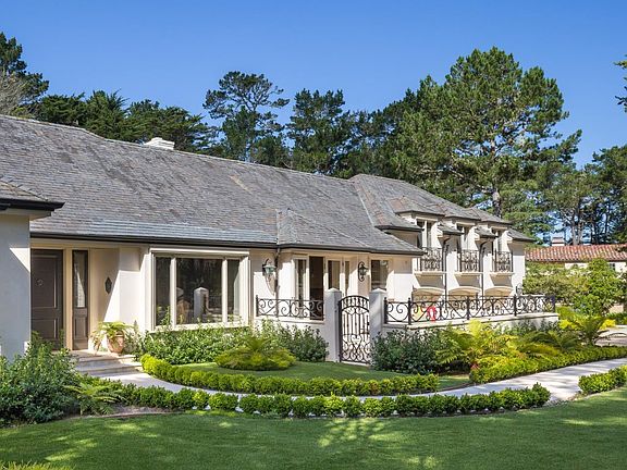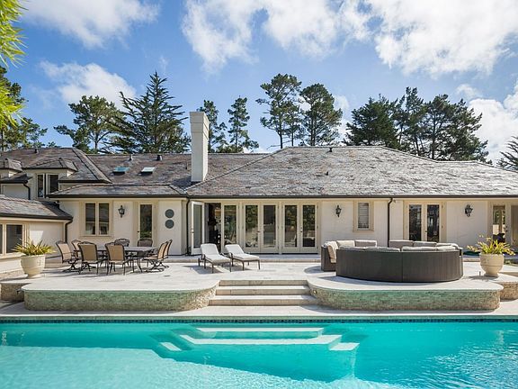 This stunning Pebble Beach home has been completely remodeled to exacting standards, with meticulous attention to quality and detail throughout. The floor plan is ideal for both family living and large-scale entertaining. The main level is an entertainers dream with an elegant open kitchen/dining/great room that expands via a wall of glass doors to the generous limestone patio, swimming pool, hot tub, and bocce ball court, creating a wonderful space for indoor-outdoor living. The main level also boasts a formal living room, wood-paneled office, and a gracious master suite with two substantial walk-in closets. Additionally there are two en-suite bedrooms, a large, light-filled family/game room and a guest suite. A four-car garage with its own bathroom completes this fabulous home!