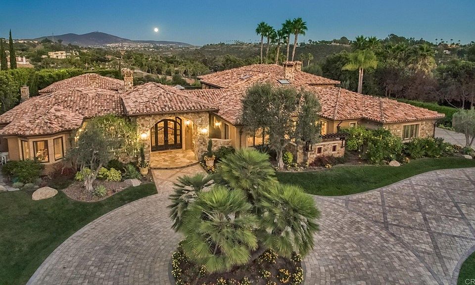 Casa Calado e Meraviglioso translating to 'warm & wonderful' this one of a kind custom estate is a must see. Located in one of the most desirable areas of Rancho Santa Fe with easy access to shopping, the airport and beaches. Built in 1998 and completely remodeled in 2010. From the moment you enter its private gates you will experience an immediate feeling of peace & serenity. This 6,000+sf one level,4 bedroom, 6 bath main residence is appointed with tons of natural stone & vintage hewn beams & trusses, & accented with custom groin ceilings. Features a full sound system, cozy home theatre, 3 masonry fireplaces, gourmet kitchen, & 2,000+ sf of indoor outdoor living that enjoys a spectacular 280 degree view & is a fully integrated smart home with app based control of HVAC,Media, pool & security cameras. The 4 bedrooms, all on-suite with walk in closets & private courtyards, The master suite offers views, sitting area, custom stone fireplace, vintage wood floors, large separate closets & a spa like bath retreat. Entertainers will marvel at the gourmet kitchen that opens to the beautiful indoor outdoor great room. The kitchen features an 8 burner Viking range w/3 ovens & a microwave. The large center island has a farm sink & prep sink & is framed by a one of a kind skylight. There are 3 dishwashers a walk in pantry & butlers pantry with Miele coffee machine. The great room showcases a stone fireplace, wet bar, 500 bottle climate controlled wine room & a 32' retractable door that opens to the luxurious outdoor living environment. The remarkable outdoor living area features a stone fireplace, overhead heaters, & a kitchen featuring a masonry wood burning pizza oven. The estate also has a 1200+ sf guest home that features 1 bedroom, executive office, living area w/wet bar, Miele coffee machine, dishwasher & refrigerator. The bathroom features a steam room that seats 6. Just like the main house, the views are spectacular! The estate property has is designed into 3 exterior spaces. As you enter through the property gates you are immediately welcomed to luxurious landscaping, custom waterfall, custom paver driveway which gives access to the large 4 car garage which has been outfitted w/ cabinetry, a sink, refrigerator, separate ice machine, TV 7 water softening system. The backyard is separated into a upper & lower yard. The upper yard showcases a one of a kind custom zero edge pool, lush landscaping, flagstone patios, 2 masonry fire pits, fireplace and a tailored Bermuda grass lawn. The lower yard offers a tennis/play court, horseshoe pit, fruit trees & a 150 sf multipurpose building w/ consistent architectural design perfect for storage, a dog home, or playhouse. The estate has an owned 56 panel solar system, a well for irrigation, & over 150 up lights strategically positioned to showcase the amazing landscape in the evenings. Everyone that has had the opportunity to spend time on this estate has commented on its luxury, beauty but most importantly how warm & wonderful it makes them feel. 2021-09-14