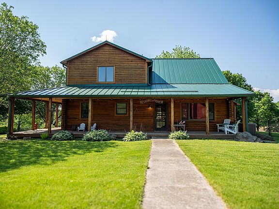 Located just north of Lake Summerset on 10 acres +/-, this property offers a perfect blend of country charm and modern amenities amidst rolling hills. As you enter the circle driveway, you’ll immediately notice the well-maintained log cabin, multiple outbuildings, and an inviting in-ground pool. Approaching the cabin, you’re greeted by a spacious wrap-around porch, perfect for entertaining, with an additional space at the rear of the home. Inside, an open floor plan with abundant natural light and hardwood floors welcomes you. The large family room seamlessly transitions into the eat-in kitchen, remodeled in 2021. This high-end kitchen features granite countertops, custom cabinets, and stainless steel appliances, including a Wolf stove with a pot filler, sub zero refrigerator, Cove dishwasher, and microwave drawer. The main floor hosts one bedroom and a full bathroom, which can also serve as an office with convenient access for visiting clients. An elegant open staircase leads to an oversized master bedroom upstairs, complete with its own full bathroom. The lower level offers a recreational/bar area, two additional bedrooms, and a full bathroom. The property’s appeal extends outdoors with a variety of functional spaces. A 48x52 outbuilding features concrete floors, two overhead doors, and a heater, while a second building serves as a workshop with concrete floors and a wood-burning stove. The in-ground saltwater pool (installed in 2017) is surrounded by pavers and a stone wall, complemented by a roofed bar area perfect for entertaining with its own grill. Despite its private setting, the property is conveniently located near town. Additional storage buildings and a chicken coop add to the property’s versatility. The land includes 3.5 acres of tillable ground, over 1 acre of open ground that can be farmed or used as pasture, and 1.25 acres of timber on the south side with a creek. Numerous updates over the years include the roof, windows, exterior staining, gutters, and mechanicals, making this property a truly exceptional find.
