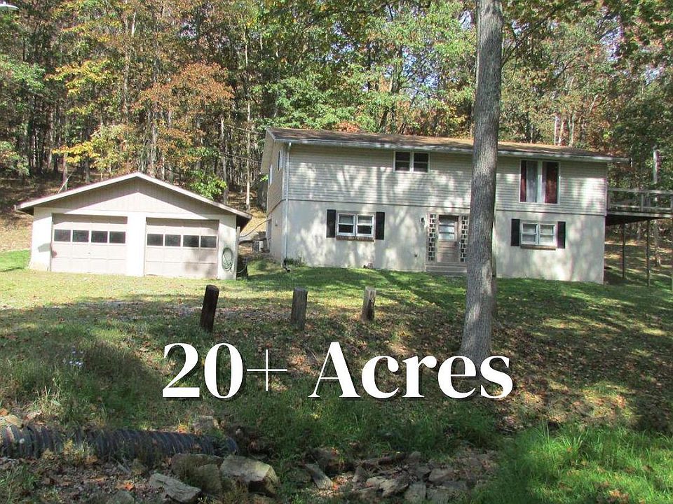 20 plus wooded acres provides you with the perfect mix of privacy, comfort and adventure. Welcome to 14742 Happy Hills Rd, a beautifully updated 4 bed, 2 bath bi level home tucked away with its very own stream! Whether you’re searching for a weekend getaway, a year-round residence, or a nature lover’s dream, this Huntingdon County gem checks every box. Step inside to an inviting open-concept main level with a bright living room, spacious dining area, and a modern eat in kitchen perfect for entertaining or cozy nights in. Enjoy peace of mind with recent upgrades including a new septic system (2022), central A/C, and updated appliances. Downstairs, the fully finished lower level features a large family room, a private fourth bedroom, and walkout access to your outdoor oasis. Love the outdoors? You’ll adore the sunroom, expansive deck, and the sound of the stream in your backyard. Plus, the detached 2 car garage and 44’x26’ outbuilding give you tons of space for your camper, boat, workshop, or gear. Only 25 minutes from Lake Raystown and close to State Game Lands, this property is ideal for hunting, hiking, and getting away from it all. If you're ready to enjoy privacy, peaceful views, and year round access to outdoor fun. Happy Hills is calling!