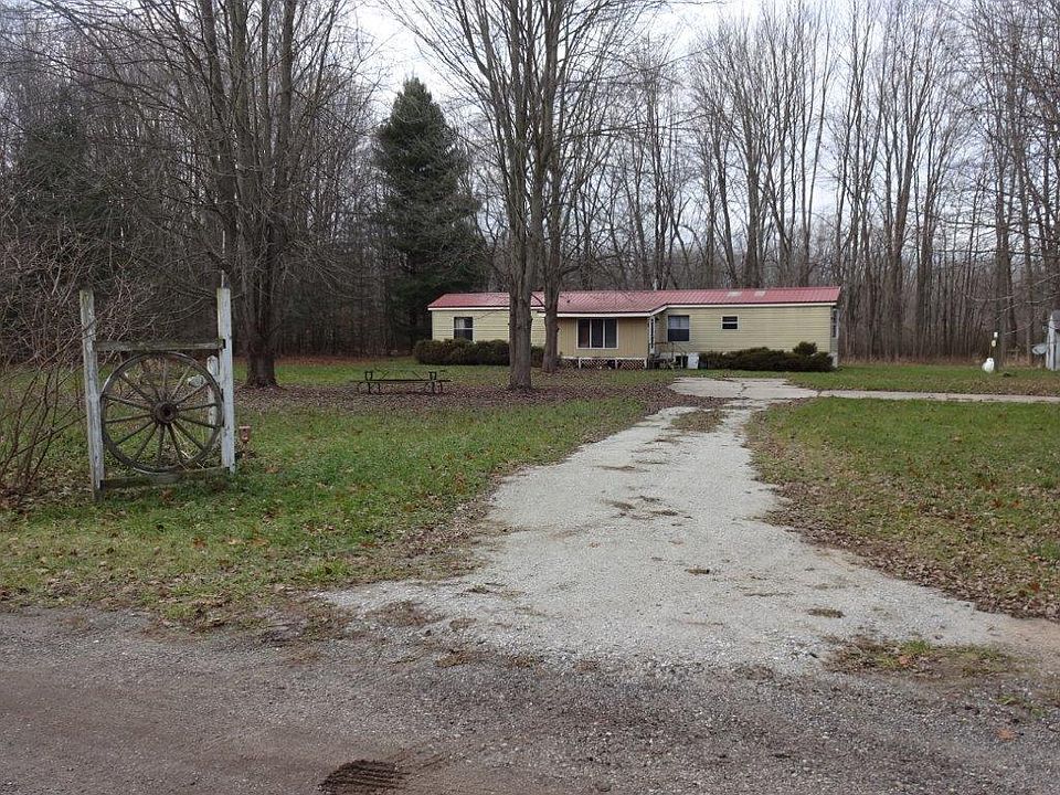 Great Location between Grand Rapids and Muskegon! 2 Bedroom manufactured home on a private spot with 11 wooded acres and a two stall garage. Property being sold as is.