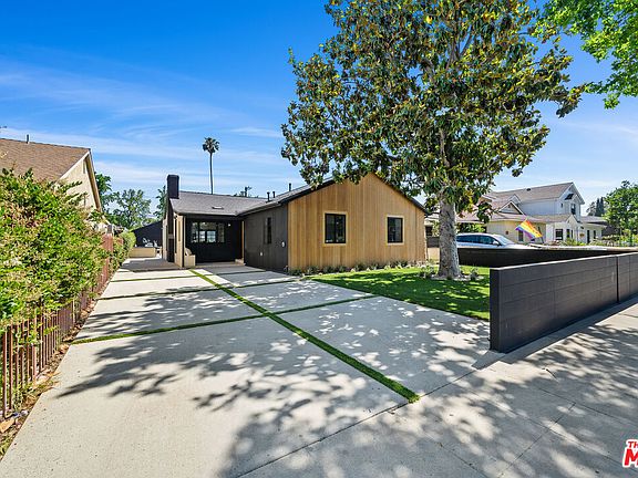 Organic Elegance in Every Detail. Nestled in a charming, close-knit pocket community within the award-winning Kester Elementary School District, step into this serene, design-forward 4-bedroom, 3.5-bath retreat with a bonus detached office, where natural textures and creamy tones set a calming tone throughout. The home features white oak flooring, custom white oak cabinetry, and a stunning white oak kitchen topped with a refined Boticcino marble slab. Sunlight floods the cozy living spaces through skylights and expansive windows, while French doors open to a tranquil backyard oasis complete with an outdoor BBQ, sunken fire pit, and lush landscaping perfect for entertaining or quiet evenings under the stars. Thoughtfully designed custom closets, a built-in bar, a detached office, and a private driveway with parking for three cars add functionality to this refined, organic home. A harmonious blend of warmth, minimalism, and natural light this is your sanctuary.