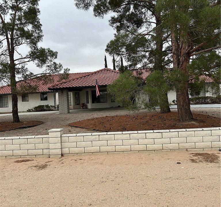 The Apple Valley Golf Course is located across the street from the property. The property boasts of 4 bedrooms and 3 Baths. There is a formal Living and Dining Room, plus a family room with fireplace, an informal dining area. The home has 4 bedrooms, the Main Bedroom has 2 closets and a slider door that leads to outside covered patio. The bath has a spa tub and stall shower. The home has another bedroom on a separate wing with a full bath. The home has extensive use of marble throughout. The bedrooms are carpeted. The laundry room is indoors. The home has a central vacuum system. The kitchen has a double oven, The exterior of the home has a portico in the front. Tile roof, and sully landscaped. There is slump stone fencing around the home ..The backyard has a covered patio, plus slump stone planters. The back yard has a grass area plus fruit trees. Come and see, the owners can accommodate a fast escrow.,