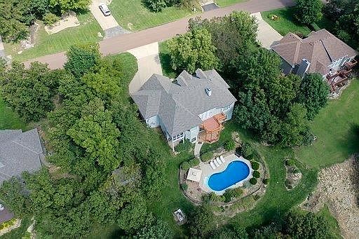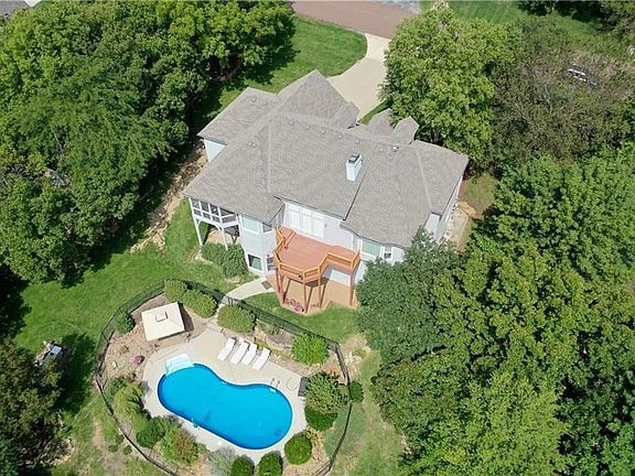 Motivated Seller! Woodland retreat on 1.3 acres, w/inground pool! Home features hardwoods, granite counters, breakfast bar, double oven, gas cooktop, large room sizes & high ceilings throughout, floor to ceiling windows, built-ins & grand lower level finish, perfect for entertaining, includes a wet bar w/fridge & wine cooler. Gorgeous outdoor oasis is lakefront & includes a screened in porch, tiered deck w/ master bedroom access, sport pool, gazebo, playhouse, shared dock. Zoned HVAC (1 NEW UNIT) & newer roof.