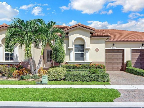 Move-in ready & meticulously maintained! This 2BR + Den, 2BA, 1CG Vittoria model offers worry-free living with newer major systems: electrical panel (2018), A/C (2022), water heater (2021), refrigerator (2023), epoxy garage floor (2023). Enjoy custom closets (2017), crown molding, high-hat lights & motorized LR shades. On a premium lake front lot, this designer decorated home features an open kitchen with custom cabinets, granite counters, marble backsplash, SS appliances. Primary suite offers granite bath, frameless shower & walk-in closet. Safety: impact windows, leaded glass entry, ADT security system. Relax on your screened lanai while taking in your lake view. Clubhouse, theater, café, pools, tennis & pickleball and more! No lease 1st yr own; 1 lease per 12 mo., 6 mo. min. 55+