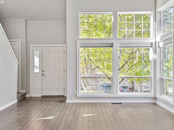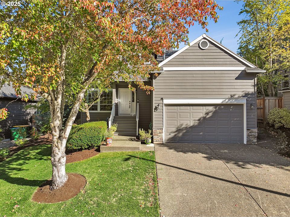 Glorious natural light and vaulted ceilings greet you in this lovely, impeccably maintained home. The spacious living/dining room with fireplace and views of the yard is a cozy retreat. The efficient kitchen hosts quartz counter tops, SS appliances, island and pantry with eating nook and access to the level back yard that is stunning! Enjoy the large, covered patio for dining surrounded by well – planned mature landscaping. This fully fenced back yard is exquisite. The primary bedroom suite has lovely views of the yard, vaulted ceilings, soaking tub, walk-in closet and double sinks. Upstairs has three sizable bedrooms with plenty of closet space with one of the rooms being a great flex space. What a great location! Close to the tech corridor, near Progress ridge shopping and dining area, parks and trail as well as Hwy 217 with easy access.