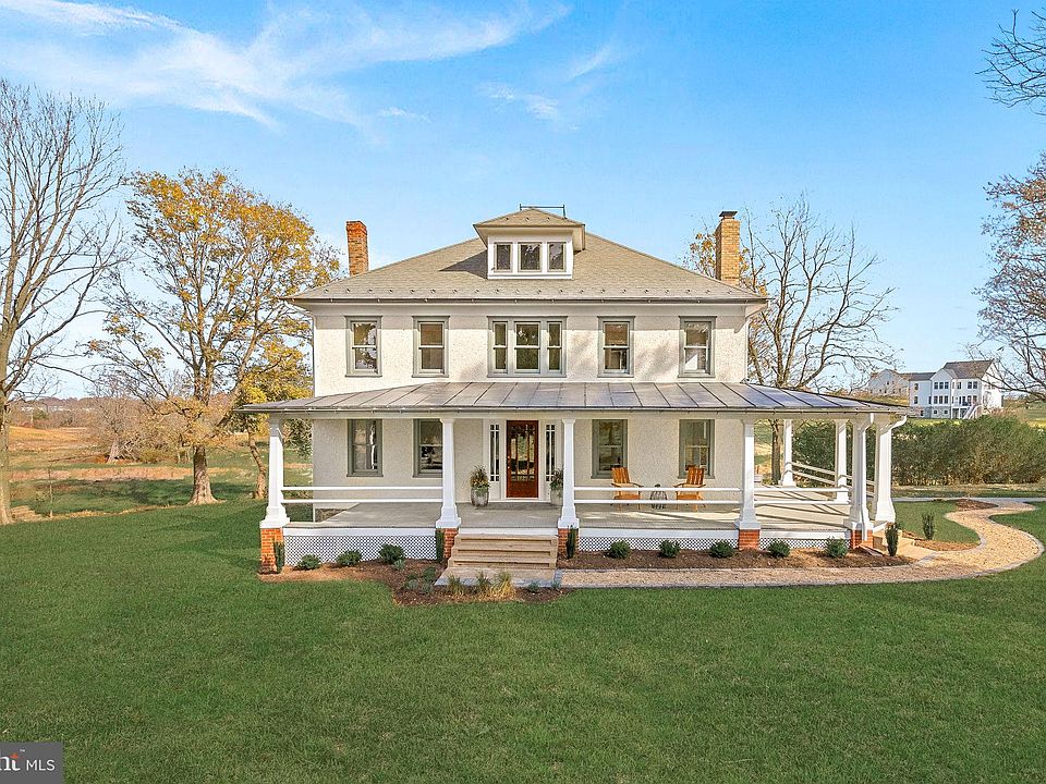 Welcome to 14749 Huber Place, the crown jewel of Glenmore Farm. This exquisitely restored 1928 farmhouse is nestled on nearly four acres of serene countryside, offering the perfect blend of historic charm and modern luxury. Just a short drive from the best of Northern Virginia, this one-of-a-kind property provides a peaceful retreat without sacrificing convenience. As you arrive, you’ll be captivated by the home’s stunning curb appeal, featuring a grand wraparound porch, slate walkway and patio, and enchanting landscaping that highlights its timeless character. Step inside to discover a beautifully updated interior with refinished hardwood floors, fresh neutral paint, and elegant light fixtures throughout. The home’s dual staircases showcase original moldings, adding to its historic charm. A spacious main-level office and high-speed internet make working from home effortless. The thoughtfully designed kitchen is a chef’s dream, featuring quartz countertops, two-tone cabinetry, under-cabinet lighting, and a fluted farmhouse sink. The main-level powder room exudes sophistication with marble flooring and designer finishes. Upstairs, each spacious bedroom is tastefully updated with new lighting, paint, and refinished floors. The full hall bath boasts a soaking tub and shower combo with sage green tile and marble flooring. The recently added luxurious primary suite is bathed in natural light, featuring a stunning Zellige tile shower, designer vanity, custom lighting, and a spacious walk-in closet with additional windows and luxury vinyl plank flooring. A substantial walk-up attic offers endless possibilities—whether you envision extra living space, a studio, or additional storage. Beyond the home, this incredible property includes a stone barn with stables and a spacious pole barn for additional storage or parking. (Both structures convey as-is.) Don’t miss this once-in-a-lifetime opportunity to own a truly special piece of Loudoun County history. Homes like this don’t stay on the market for long—schedule your private tour today!