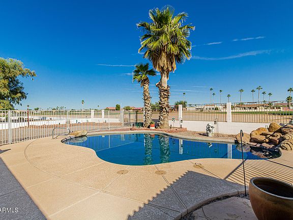 Amazing Pool Home right on the Golf Course!! Fresh Exterior Paint!! Low-care landscape, front patio, & a 2-car garage are just the beginning. Enter to find a welcoming living room, formal dining room, and a separate family room! Natural light filled the spaces, complemented by designer paint, archways, and wood-look tile flooring in all the right places. The impressive kitchen has SS appliances, ample wood cabinetry, stacked-stone backsplash, center island, a breakfast bar, and a cozy nook w/bay window. Main bedroom boasts a walk-in closet and a barn door that opens to the ensuite with dual vessel sinks. Two other bedrooms shared a Jack & Jill bathroom. Enjoy the spacious backyard w/a full-length covered patio, storage shed, & a fenced pool! Don't wait this is it!!