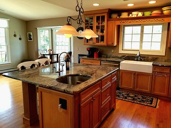 Welcome to luxurious pastoral living only 1.5 miles away from the heart of charming, downtown Milford. Observe daily yard crossings of a dozen wild turkeys and at least as many deer! This lot is 2.54 acres! The wonderfully updated kitchen, dining and living areas, boast cathedral ceilings, granite counter tops, main and chef's sink, Viking Range/Oven- w/six burners, two ovens, Subzero Refrigerator, top of the line Bosch, three tray dishwasher, walk-in, giant pantry. The Great / Dining Room features a wall of windows that displays natural scenery year - round, a beautiful brick fireplace all make you feel at home. A second living space can be found on the lower living level which consists of a bed / multi use room, a huge family room with large stone fire place and door wall exiting to the lower deck. There is a full bath on the lower level and another area used currently as a gym. The layout also provides ample storage with 9 closets!