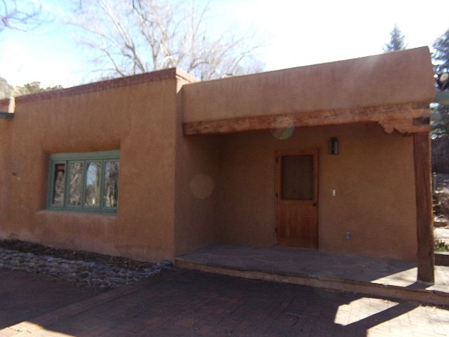 AS-IS! NO INSPECTIONS. NO CONTINGENCIES. SELLER WILL NOT RENEGOTIATE AFTER THE CONTRACTS ARE EXECUTED. Vintage adobe, with guest house + 2 attached guest room with private entrances. This rural property sits in middle of Aspen trees setting on 1.5 acres. Main house has 2 living room areas, two bedrooms with private bathrooms each. Dining area plus butler's pantry and large chef kitchen. Lots of charm that includes three kiva fireplaces, vigas, thick walls, pine and Saltillo tile flooring. Yard is spacious with lots of shade trees and has mature landscaping with a variety of flower bushes. Features equestrian possibilities, as well. Vacant and a "must see" listing.