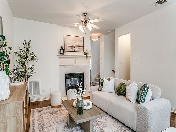 Fall in love with light, space, and style in this beautiful three-level end unit townhome! Tucked in a quiet neighborhood with quick access to highways 161 & 635, DFW Airport, shopping, and dining, this home blends convenience with style at every turn. The heart of the home is the second floor, where an open-concept layout and abundant natural light—thanks to extra end-unit windows—create the perfect space for effortless entertaining. A see-through gas fireplace adds warmth and ambiance between the oversized living, dining room and half-bath, while the kitchen shines with new countertops and backsplash, plus direct access to a private balcony overlooking the peaceful community greenspace. On the first level, a spacious two-car garage with extra storage opens to TWO flexible bonus rooms—perfect for a home office, gym, and playroom—plus access to the downstairs patio. The third floor boasts a serene primary suite complete with a newly remodeled bathroom, while two additional guest bedrooms share their own separate bath. Laundry is conveniently located upstairs, and washer-dryer are included. You’ll love the thoughtful upgrades throughout, including: new flooring, fresh interior paint, updated light fixtures, painted cabinets, smart thermostats. And rest easy—your HOA covers the foundation, roof, exterior brick, landscaping, and sprinkler system, letting you focus on what really matters: enjoying your beautiful new home. Don't miss this rare opportunity to own a bright, spacious, and updated townhome in a location that truly has it all. This well-maintained home is perfect for those seeking low-maintenance living or a lock-and-leave lifestyle in a prime location.