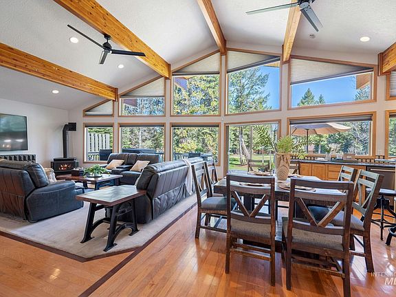Perfectly situated on Birch 2 of the McCall Golf Course, this turn key 3 bed 2.5 bath home offers an array of advantages. Luxurious touches such as hickory flooring and cabinetry, fresh updated lighting throughout, and high quality furniture are just a few of the highlights of this remarkable home. Enter to vaulted ceilings and a fantastic open floor plan that is bathed in natural light from the soaring windows overlooking an expansive Trex Deck and golf course. The kitchen offers new appliances, granite countertops, plenty of storage and a functional layout. You will find the first of two Primary Suites on the main floor along with the 3rd bedroom and large laundry room. You will enjoy the tranquility of the spacious 2nd Primary Suite upstairs that boasts a large walk in closet and plenty of privacy. There is plenty of storage space for all your toys in the oversized attached heated and insulated 3 car garage along with multiple places to park in the paved drive way. Close to everything McCall has to offer!