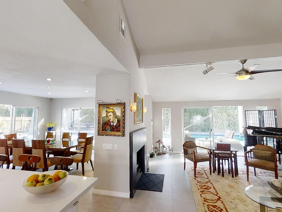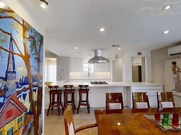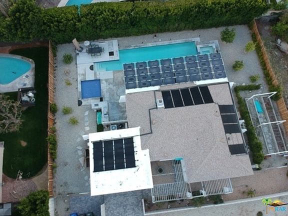 This expertly renovated 3 Bedroom 2 Bath home in the desirable Vista Norte neighborhood features a unique, owned Glass Solar Array, operational in January, 2018, which completely powers the house and pool and a Custom Lap Pool measuring 55 feet in swimmable length with two lanes and a pool-side raised dining area with fire pit. There is an outdoor kitchen with a built-in Weber Genesis grill connected to the gas main and an ice-well for parties. Citrus trees dot the oversized lot and a kitchen garden with two 28' x 4' raised beds with built-in irrigation. The interior is open plan with a kitchen newly renovated to professional spec with all new appliances, including a ZLINE 900 CFM Professional Grade exterior-vented island hood and a Samsung double oven 5 burner gas range, with a 22,000 BTU power burner for a wok. Three bedrooms, one used as a library/den, complete the interior of this great home. Please view the 3-D tour for a virtual walk through. Land Lease through 2067 at $330/mo.
