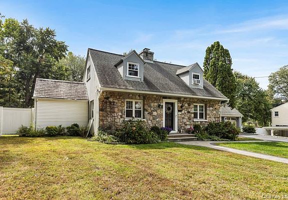 Charming stone and stucco Cape Cod located in the Mortgage Hill section of Peekskill. Nicely proportioned rooms include a spacious living room with stone fireplace (wood burning insert), formal dining room, former screened porch now enclosed as a 1st floor den, office/exercise space, kitchen and powder room. The second floor features 2 large bedrooms and a full bathroom. The unfinished lower level offers plenty of storage, utilities and laundry. The large level private fenced yard features a spacious area for seasonal entertaining, family barbecues, a fire-pit and more. There is an underground canine fence. Close to all Peekskill has to offer. Minutes to the train and waterfront.