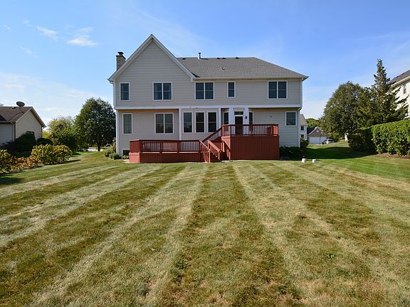 Stunning 5 bedroom, 3.5 bath, full finished basement and 2 car garage oversized home! Ideal location near 59 Rd, shopping centers, restaurants, parks and I-90 expressway. Featuring soaring 9' ceilings and a blend of porcelain tile, this spacious layout is both functional and beautiful, with over 4,500 sq ft of finished space including full finished basement. The main floor offers multiple living areas including living, dining, den and family room with a fireplace. Patio door opens to a beautiful deck and a stunning large backyard to enjoy peaceful outdoor living. The kitchen is the heart of the home - designed for entertaining with a island, granite counter tops, pantry, stainless-steel appliances and ample table space with direct access to the outdoors. Large size bedrooms, a full laundry area and 3 full baths (one in the basement. The luxurious primary suite features tray ceilings, dual walk-in closets, and a massive en-suite bath with cathedral ceilings, skylight, whirlpool tub, separate shower and dual vanities. The 5th bedroom is oversized with a walking closet. The full and large finished basement is perfect for a huge workout room, and tons of storage or creative space. Updates include: High-efficiency furnace, AC, Roof, water heater and top of the line windows and doors. This is a 10 out of 10 home