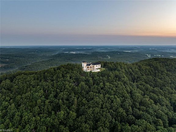 Situated on the highest peak in Randolph County, this 10,000 sqft custom-built home offers breathtaking views of the horizon. It features 44 acres, an infinity pool, outdoor fireplace, and a rooftop deck with sunset views. The main level includes 3 bedrooms, each with ensuite bathrooms and walk-in closets, along with a secondary kitchen and laundry room. Upstairs, the primary suite feels like a private retreat, featuring panoramic views, a spa-inspired bath, and an expansive dressing room. There is also another bedroom with ensuite bath and walk-in closet. The gourmet kitchen flows into a dining room and living area with fireplace, creating the perfect setting for both intimate evenings and large-scale entertaining. Other amenities include a home gym, 4 car garage, and exceptional views from every angle. Unparalleled craftsmanship throughout. From sunrise to sunset, this estate offers an unmatched lifestyle of privacy, beauty, and luxury, making it one of NC's most remarkable estates.